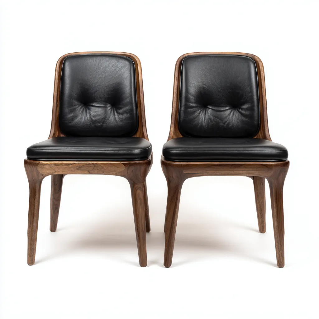 La seduta e lo schienale sono realizzati in pelle di colore nero, mentre la struttura portante è in legno di colore marrone. La lavorazione accurata garantisce solidità strutturale e una piacevole resa estetica.